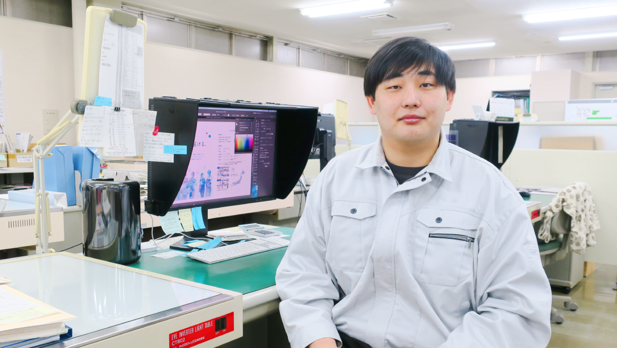 私はDTPオペレーターとしてクライアントから入稿されたデータを印刷に適したデータに変換する作業をしています。複雑なデータを指示通りに製版できたときはとてもやりがいを感じます。またたくさんの製品のパッケージやラベルのデザインを見ることができるのでワクワクしながら作業をしています。